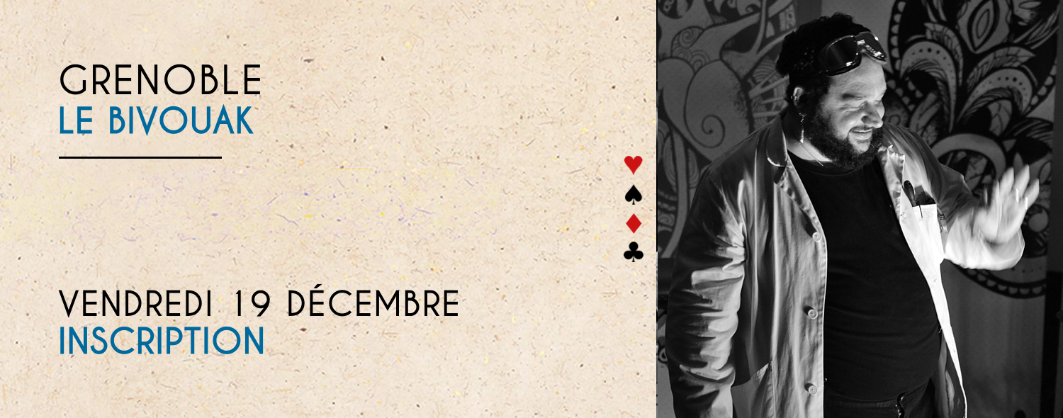 Le plus simple est de vous inscrire ci-dessous ou d’envoyer un mail en écrivant quelle carte pour quelle soirée et décrire un peu ce que vous faites !